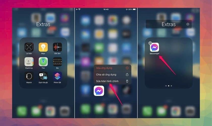 Bước 4: Trong thư mục, kéo ứng dụng sang bên phải để đưa vào trang thứ 2 hoặc thứ 3, giúp giảm khả năng bị người khác nhìn thấy.