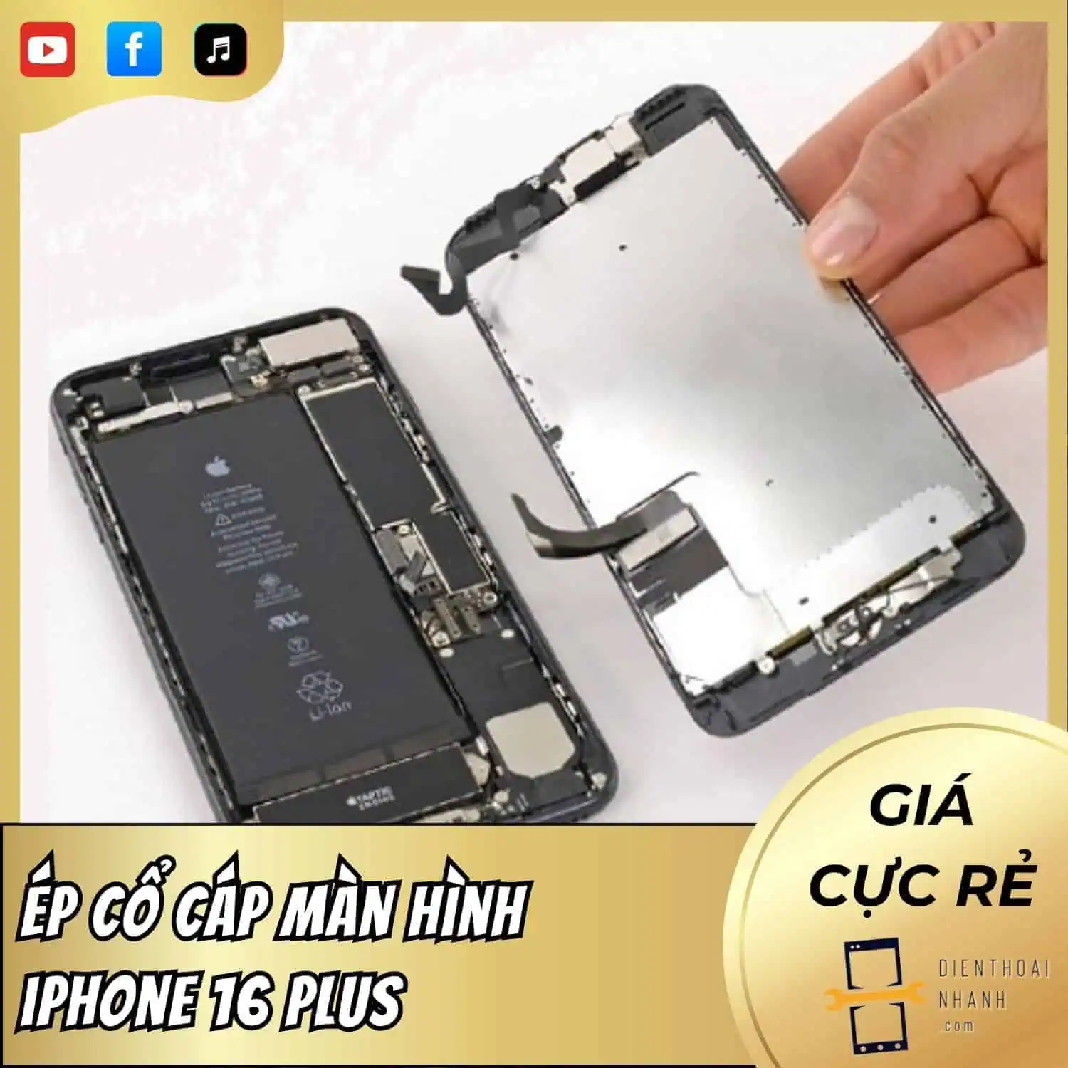 Lưu ý: Giá trên có thể thay đổi tùy theo tình trạng cụ thể của máy và thời điểm sửa chữa. Tuy nhiên, Điện Thoại Nhanh luôn công khai giá cả minh bạch, báo giá trước khi sửa và tuyệt đối không thu thêm phụ phí. Quý khách hàng có thể hoàn toàn yên tâm về chi phí khi sử dụng dịch vụ ép cổ cáp màn hình iPhone 16 Plus tại trung tâm chúng tôi.