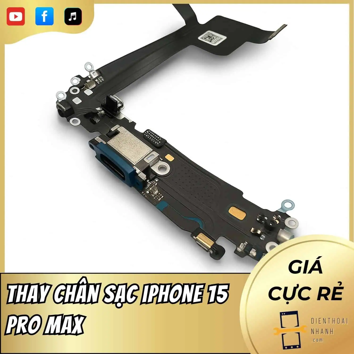 - Thời gian thay chân sạc iPhone 15 Pro Max thường dao động từ 30 – 60 phút, tùy theo độ khó khi tháo lắp và tình trạng máy.
