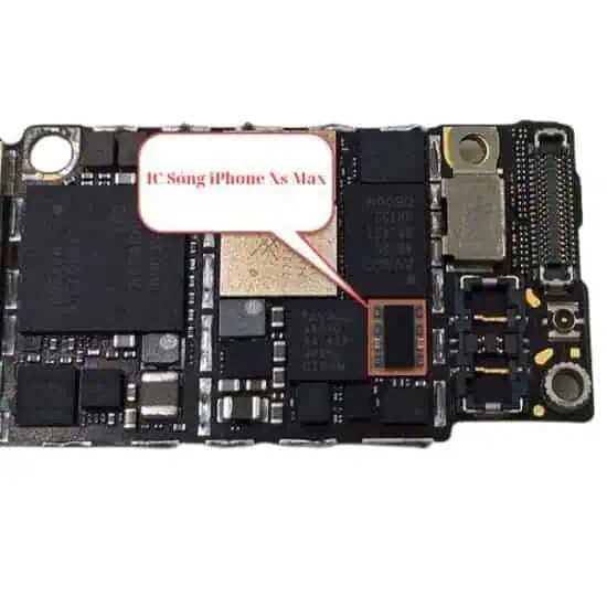 IC sóng (Baseband IC hoặc RF IC) trên iPhone XS Max được hàn trực tiếp lên bo mạch chủ, thường nằm gần module ăng-ten. Với những ai quan tâm đến việc thay IC sóng iPhone XS Max, cần biết rằng vị trí này khá nhạy cảm, chỉ nên để kỹ thuật viên có chuyên môn xử lý vì các chân IC rất nhỏ, dễ tổn thương nếu thao tác không đúng kỹ thuật.
