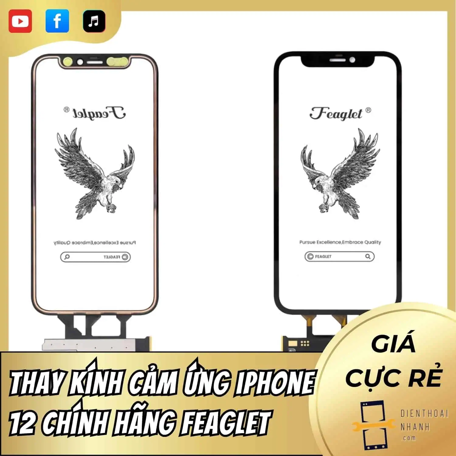 Bảng giá thay kính cảm ứng iPhone 12 chính hãng Feaglet tại Điện Thoại Nhanh