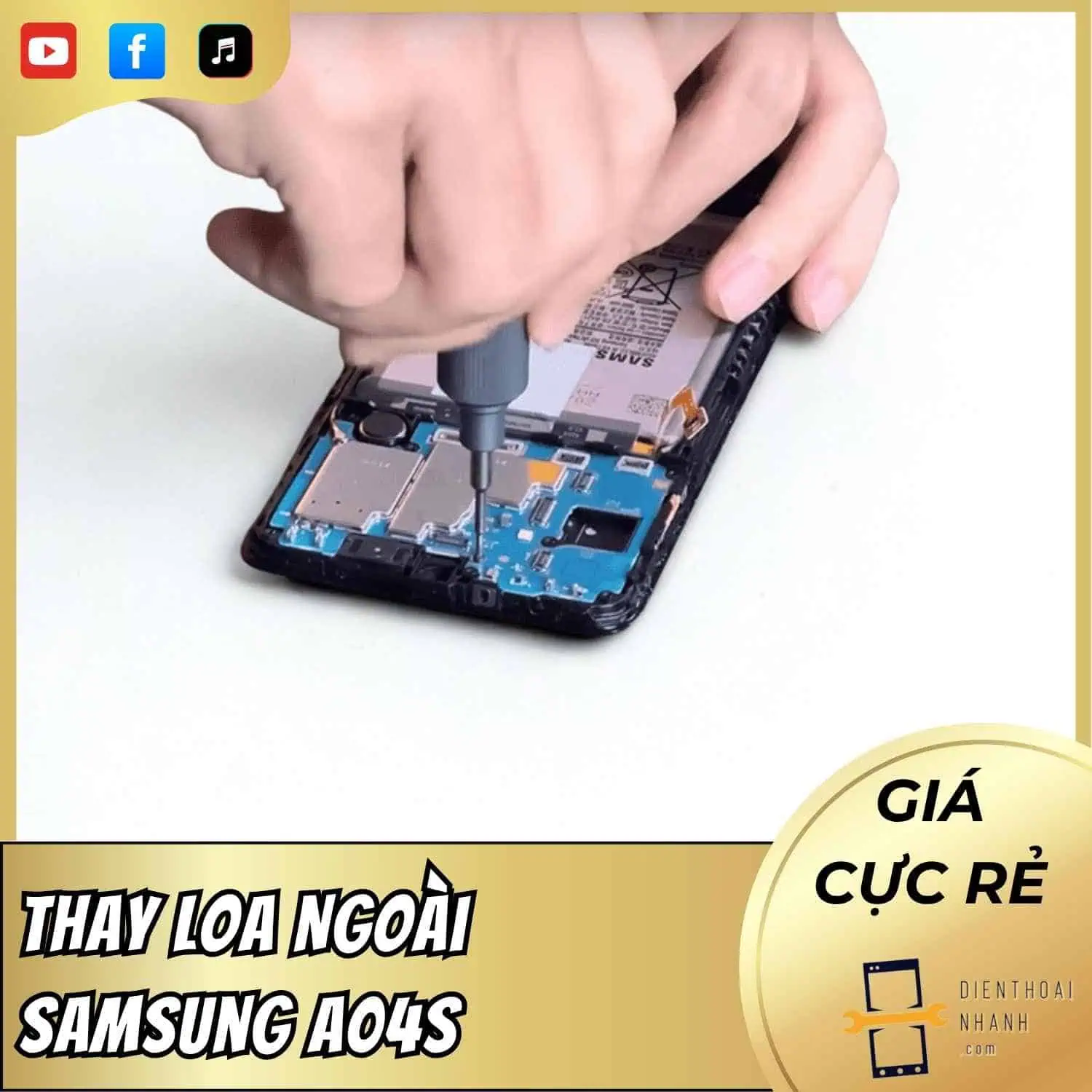 Lưu ý quan trọng: Giá thay loa ngoài Samsung A04s trên là giá trọn gói, đã bao gồm cả chi phí linh kiện và công của kỹ thuật viên, cam kết không phát sinh bất kỳ chi phí ẩn nào trong quá trình sửa chữa.