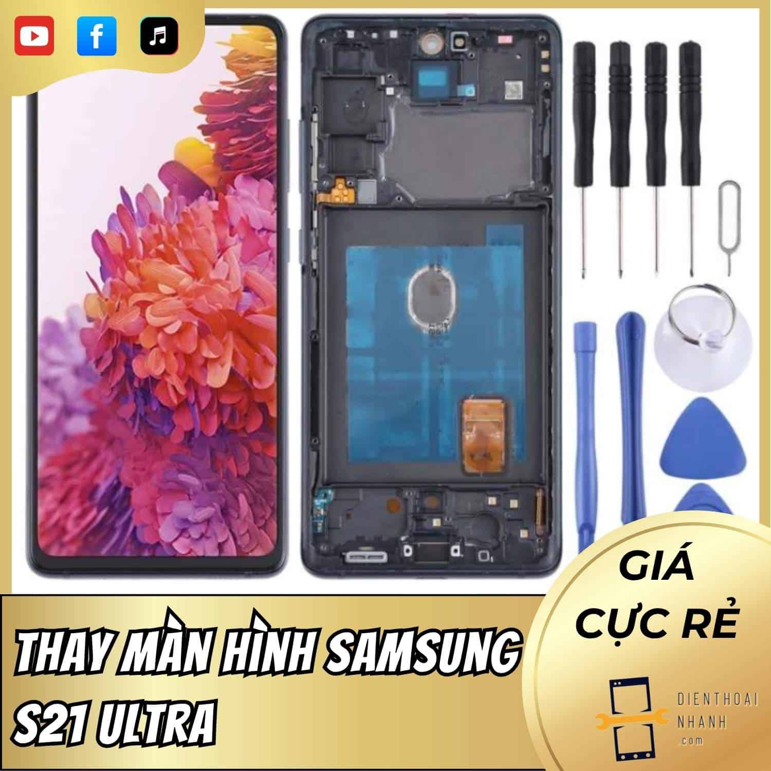 - Vui lòng liên hệ trực tiếp Điện Thoại Nhanh để được báo giá chính xác và đặt lịch thay màn hình Samsung S21 Ultra.