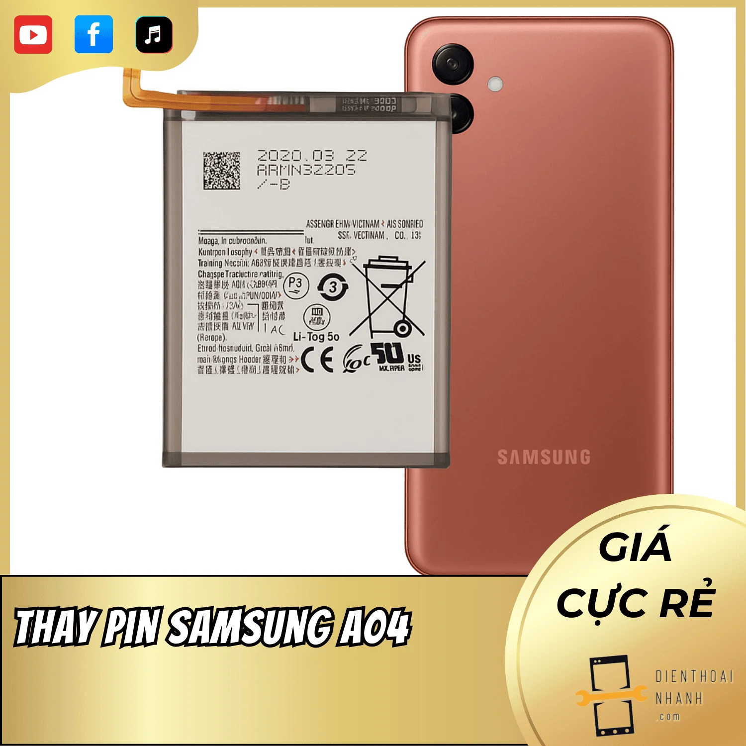Bảng giá dịch vụ thay pin Samsung A04 tại Điện Thoại Nhanh