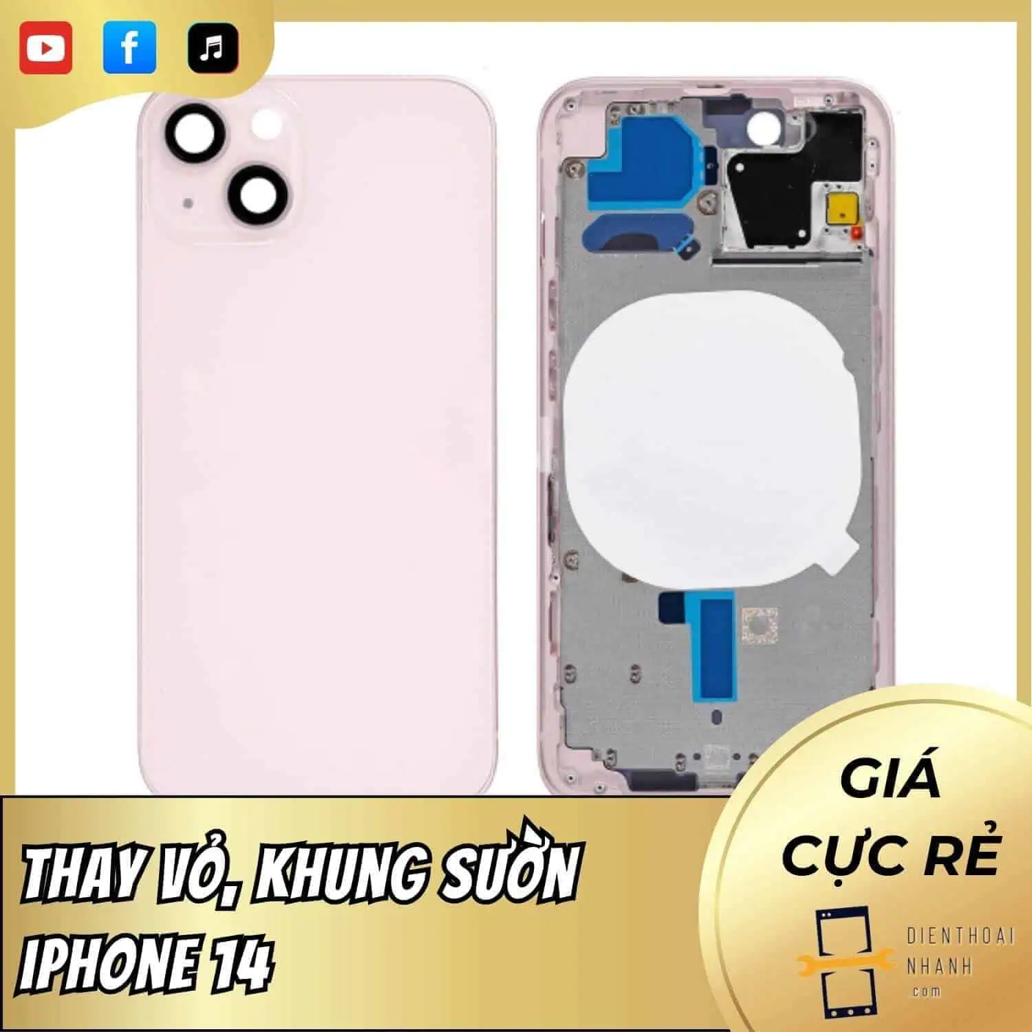 | Thay sườn iPhone 14 | 1,640,000₫ | Nhôm | Thiết kế dễ sửa chữa hơn, nhiều màu |