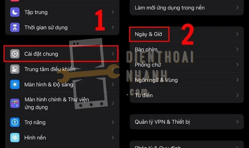 Bước 1: Vào Cài đặt trên thiết bị, chọn Cài đặt chung, sau đó nhấn vào Ngày & Giờ.