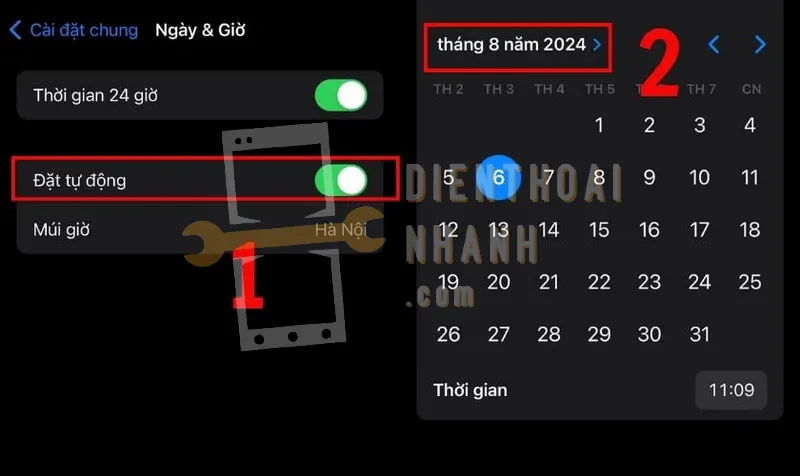 Bước 2: Tắt Đặt tự động, sau đó điều chỉnh thời gian thủ công, đặt nhanh hơn 1 tháng so với hiện tại.